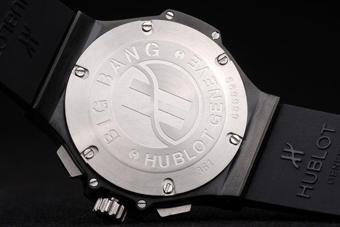 ブレスレット:イオンメッキプッシュボタンフック留め金と黒のゴムバンドを質感とウブロ彫刻
