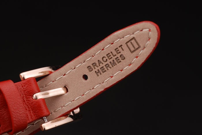 18Kローズゴールドメッキケース細長いは熱で革のストラップを赤スタンプブレスレットエルメスエルメス刻まれたバラ-Goldのメッキフック・バックルクラスプ