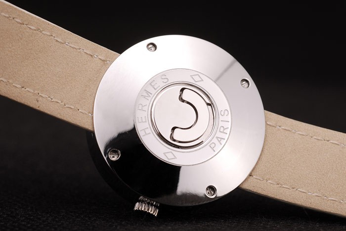 研磨されたステンレススチール製のベゼルを刻ま熱ホワイトレザーストラップは、スタンプブレスレットエルメスエルメスは、ステンレス製のフックバックルクラスプ