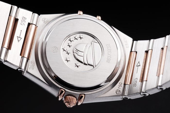 オメガのロゴと18Kローズゴールドのカットワークの王冠