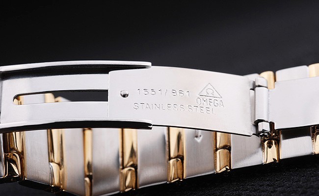 ケース:ブラッシュドステンレススチールケース< BR>ブレスレット:オメガの碑文と18Kイエローゴールドメッキとつや消しステンレススチールリンクブレスレット倍-にブレスレットの長さ