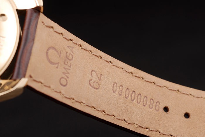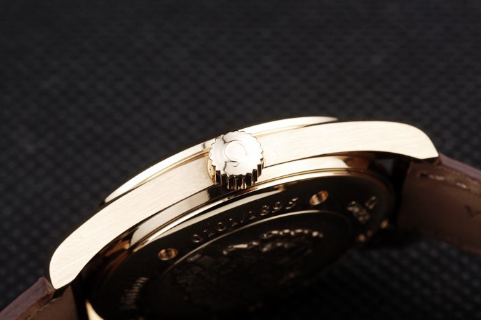 ゴールドケース:熱とブラウンワニ革ストラップは、オメガスタンプをエンボス加工し、オメガは、18Kイエローゴールド折り畳み式でブレスレットの長さ