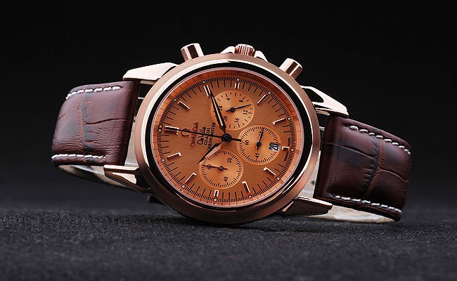 ケース:ホワイトステッチとオメガのロゴとブラウンクロコダイルレザーストラップローズゴールドフック・バックル留め金