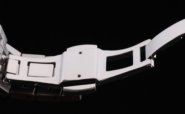 プッシュボタンリリース隠されたクラスプとローズゴールドメッキとつや消しステンレススチールリンクブレスレット:ベゼル