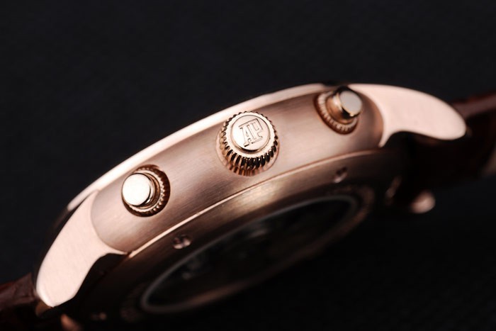クラウン:オーデマピゲのロゴとその両側に2つの小さなプッシュボタン冠と18Kローズゴールドメッキカットワーク冠はケース厚を