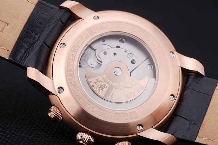 金メッキステンレススチールのケースをバラ:熱で黒ワニ革ストラップは、オーデマピゲの名称とロゴをエンボス加工し、オーデマピゲは18Kを内接ローズゴールドのブレスレットの長さ
