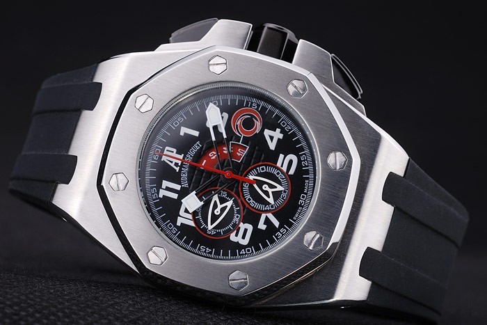 220 X 28ミリメートル:ブラッシュステンレス鋼熱とブラックラバーストラップは、オーデマピゲロイヤルオークオフショアスタンプとオーデマピゲは、イオンメッキフックバックルクラスプ