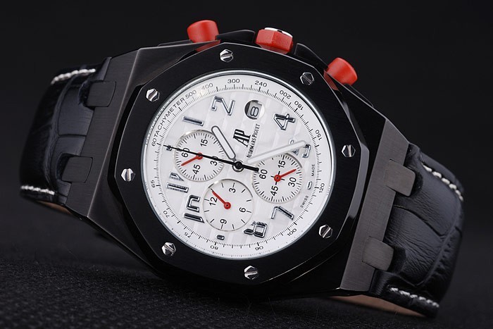 メッキステンレススチールケース:白い糸のステッチや熱で黒ワニ革ストラップは、オーデマピゲの名称とロゴをエンボス加工し、オーデマピゲは、イオンメッキフリップオーバーブレスレットの長さ