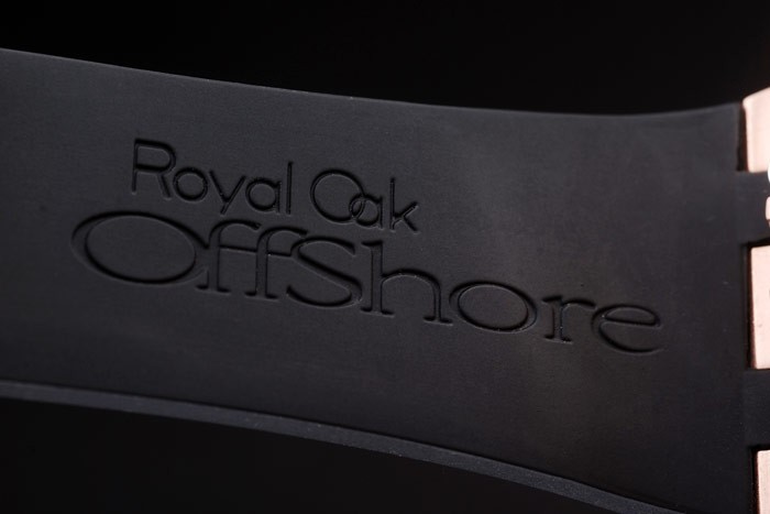 ローズゴールドメッキケース:オーデマピゲロイヤルオークオフショアは、オーデマピゲと黒のラバーストラップは、ローズゴールドを刻印エンボス倍-にブレスレットの長さ