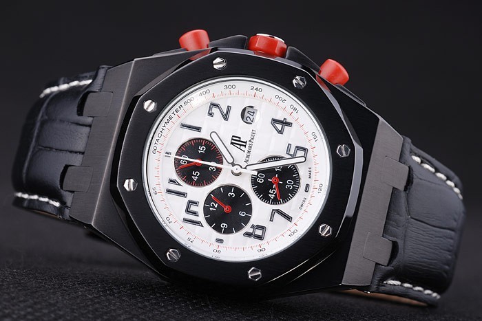 メッキステンレススチールケース:白い糸のステッチや熱で黒ワニ革ストラップは、オーデマピゲの名称とロゴをエンボス加工し、オーデマピゲは、イオンメッキフリップオーバーブレスレットの長さ