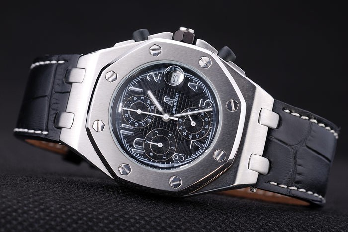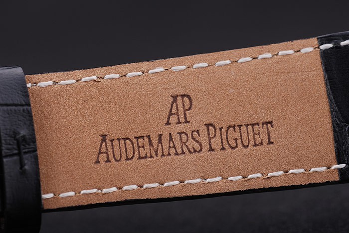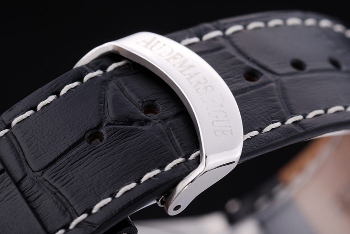 ケース:ブラッシュステンレススチールケース< BR>ブレスレット:ホワイトステッチ糸と熱で黒ワニ革ストラップは、オーデマピゲの名称とロゴをエンボス加工し、オーデマピゲは、ブレスレットの長さ