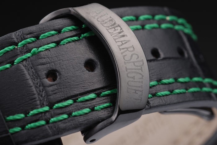 めっきが施されたステンレススチールケース:熱がダブルステッチおよび緑色オーデマピゲとオーデマピゲ黒ワニ革ストラップをエンボス刻印イオンメッキ倍インブレスレット長