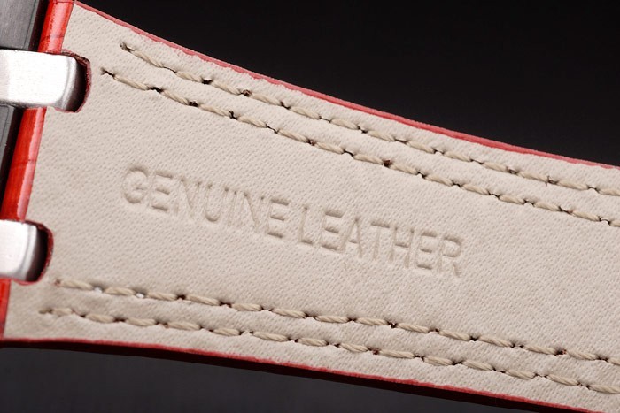 倍数でクラスプを刻印ダブルホワイトステッチとオーデマピゲとワニ革ストラップ赤エンボス皮膚