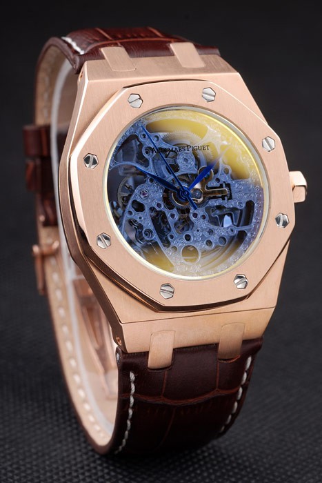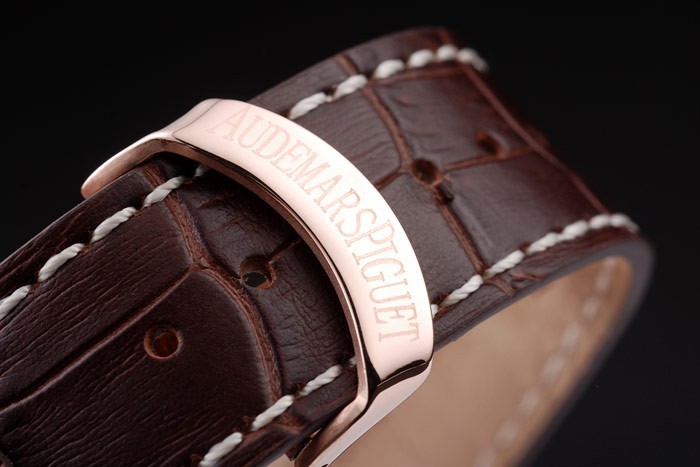 220 X 24ミリメートル:ローズゴールドメッキを施したステンレス熱はオーデマピゲオーデマピゲと茶色のワニ革ストラップをエンボスローズゴールドは折りたたみ式でメッキクラスプ