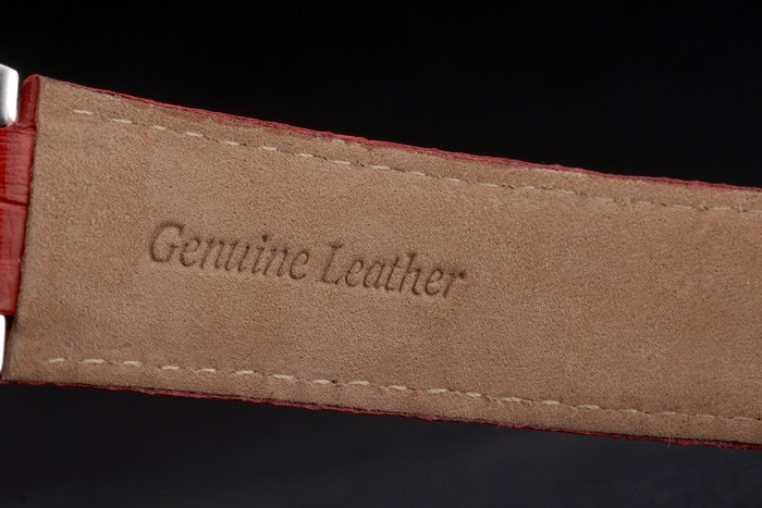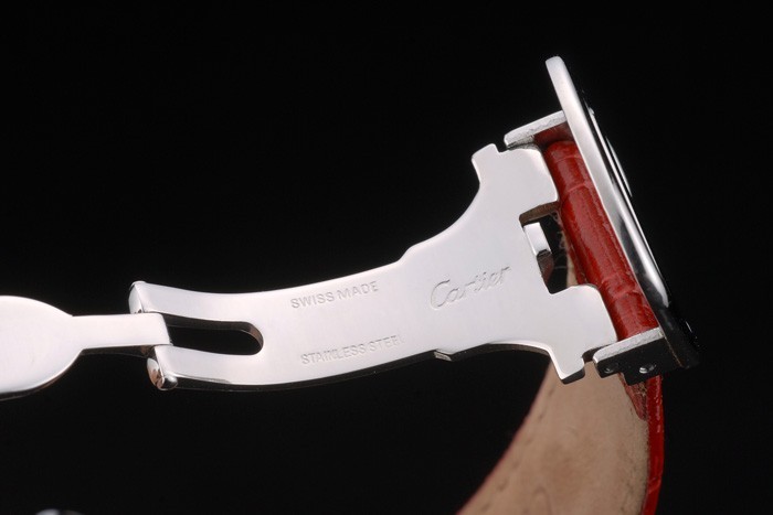 ポリッシュステンレススチールケース:カルティエ熱が赤エンボス研磨されたステンレス鋼とワニ革ストラップ倍-にクラスプバックル