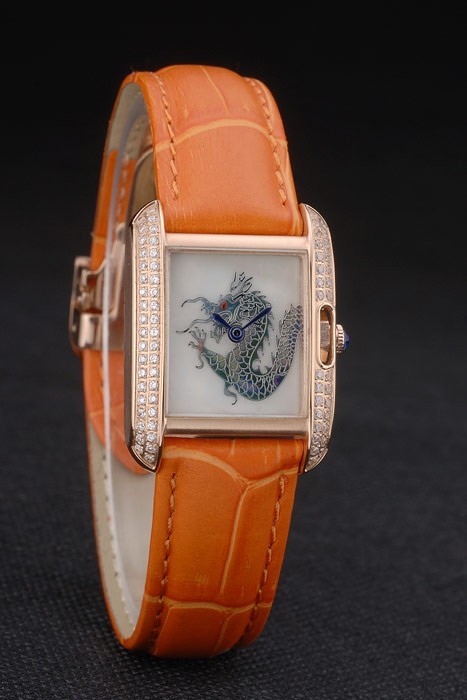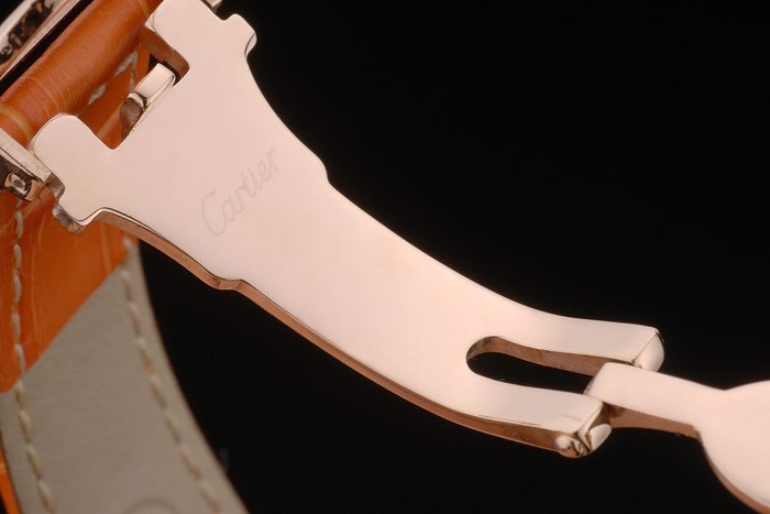 ステンレスケースをメッキ:カルティエ熱が18Kでオレンジ色のワニ革ストラップをエンボスローズゴールドは、折りたたみ式でメッキクラスプバックル