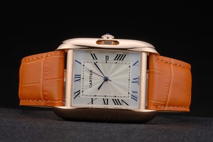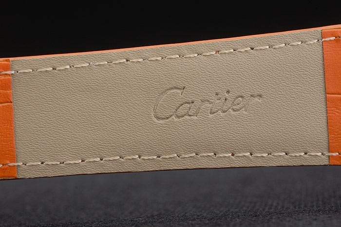 ステンレスケースをメッキ:カルティエ熱が18Kでオレンジ色のワニ革ストラップをエンボスローズゴールドは、折りたたみ式でメッキクラスプバックル