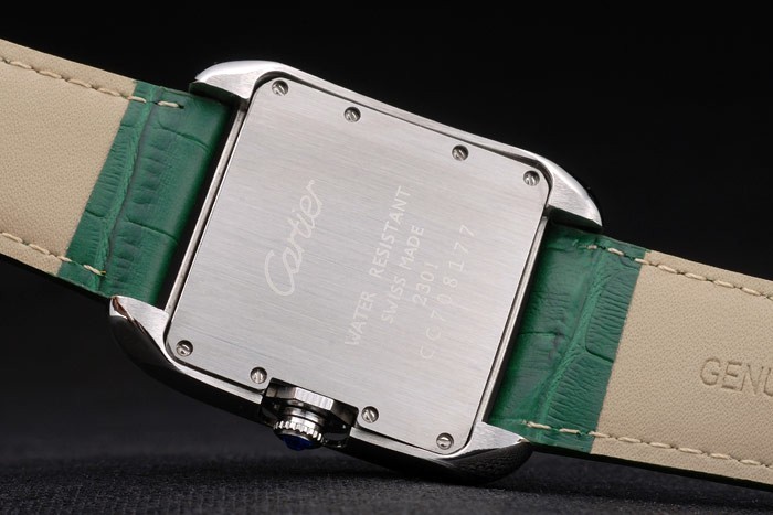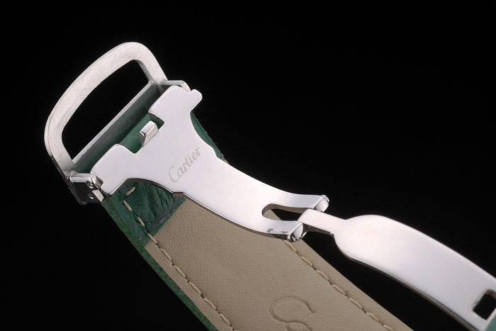 ポリッシュステンレススチールケース:カルティエ熱エンボス研磨されたステンレス鋼と緑のワニ革ストラップは折り畳み式でクラスプバックル