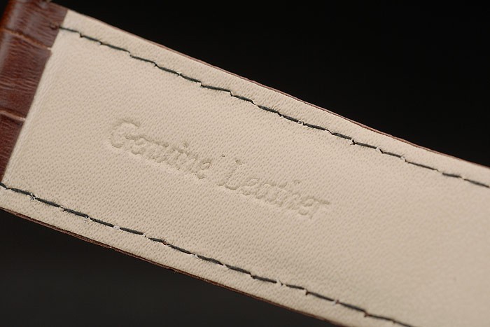 ブレスレットの長さと茶色のワニ革ストラップをエンボス加工18Kローズゴールドバンドタイプ