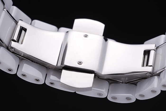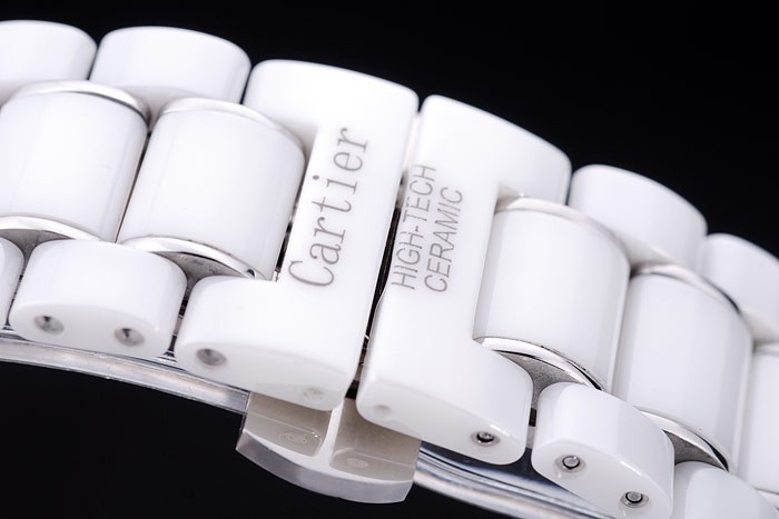 カルティエハイテクセラミック刻ま隠さプッシュ放出クラスプホワイトセラミックとステンレススチールリンクブレスレット:ベゼル