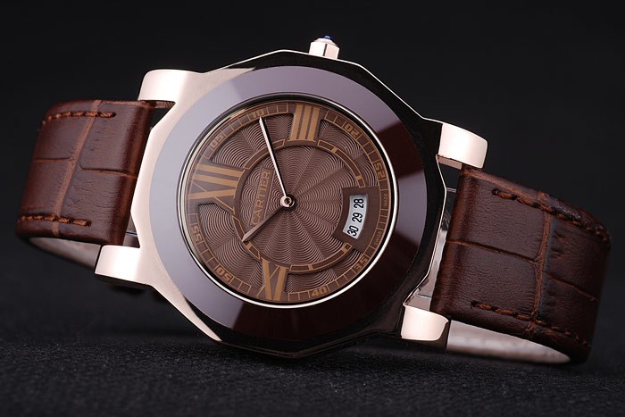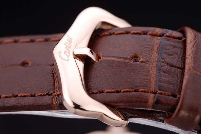 :熱がカルティエ内接とカルティエ茶色のワニ革ストラップ、ローズゴールドフック、バックル留め