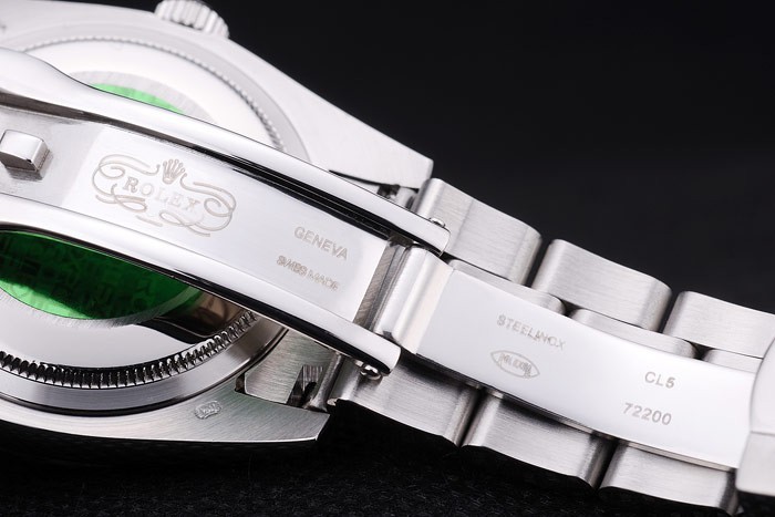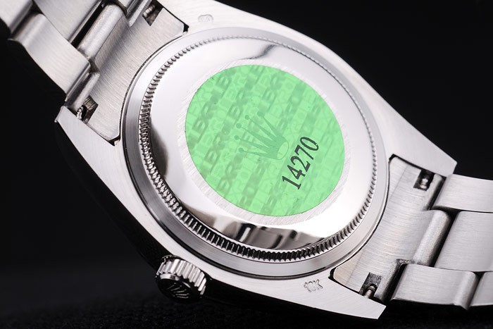 バック:ステンレススチールスナップインに戻って緑のロレックスのロゴの真正スタンプ