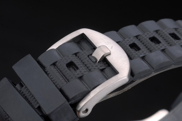 質感黒ゴムリンクフックバックルクラスプブレスレット及び「ゼニス」刻印:ベゼル