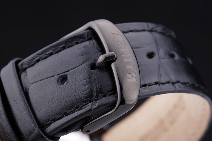 ブレスレットの長さとゼニスブラッククロコダイルストラップをエンボス>直径スキン:49のx 42ミリメートルウォッチクラスプ