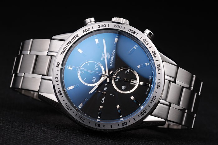 タグホイヤーカレラタキメーターベゼルブラックステンレススチールストラップをダイヤル