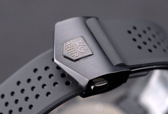 タグホイヤーと黒のラバーストラップは、折り目にイオンは、メッキクラスプブレスレットの長さ