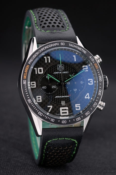 タグホイヤーカレラマクラーレンブラックセラミックベゼルブラックパンチングレザーストラップ7921