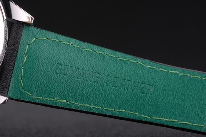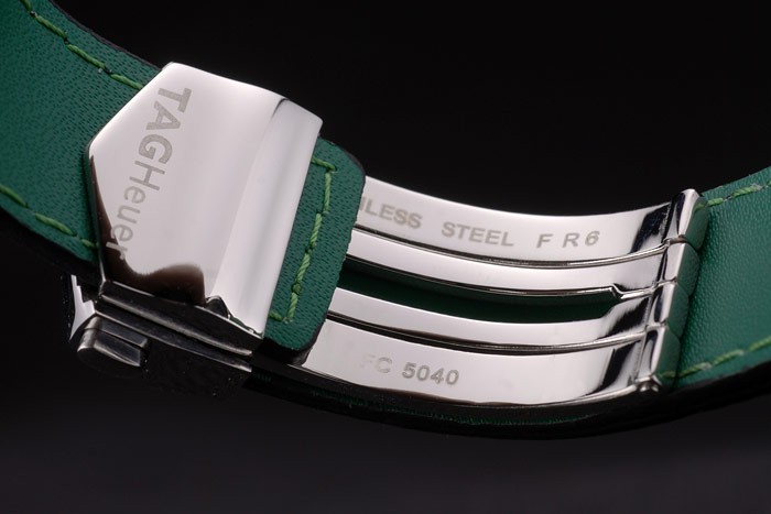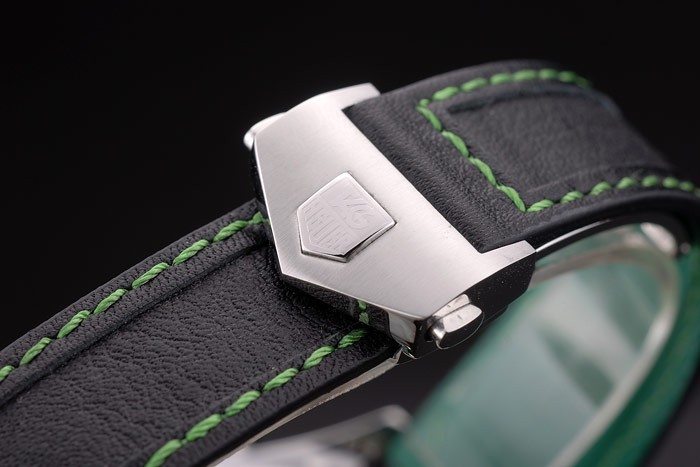 ポリッシュステンレススチールケース:熱グリーンのステッチとステンレス鋼とのエンボスタグホイヤーブラックレザーストラップ倍-にブレスレットの長さ
