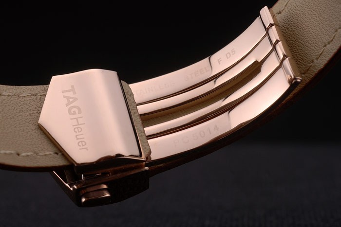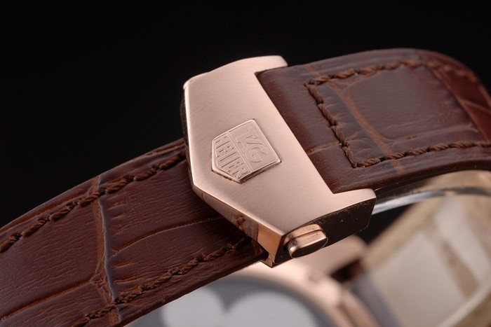 ブレスレット:熱が上昇し、金を18Kとタグホイヤー茶色のワニ革ストラップをエンボスブレスレットの長さ