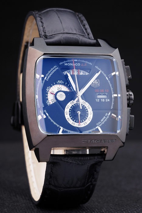 タグホイヤーモナコブラックセラミックケースブラックはブラックレザーストラップをダイヤル