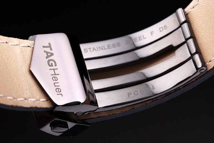 ケース:耐熱ブラックワニ革ストラップは、スタンプタグホイヤーとイオンメッキプッシュリリースが倍-にクラスプブレスレットの長さ