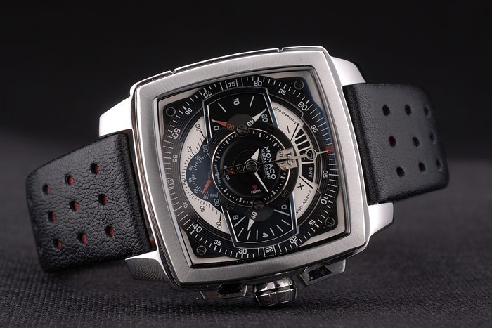タグホイヤーモナコMikrographブラックレザーストラップブラックは7924をダイヤル