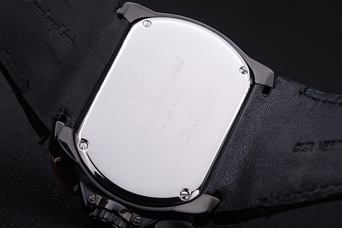クラウン:トニーノ・ランボルギーニのロゴと2つの赤いエナメルとイオンメッキステンレス鋼のカットワークの王冠は、楕円形のプッシュを突破それのいずれかの側のボタンの冠はケース厚を
