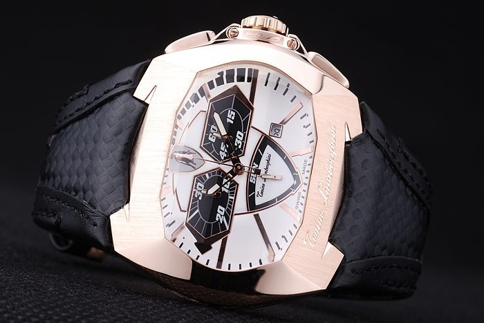 クラウン:トニーノ・ランボルギーニのロゴと2つの赤いエナメルと18Kローズゴールドメッキカットワーククラウンウォッチクラスプ