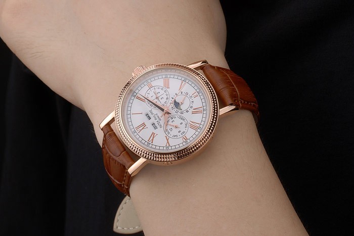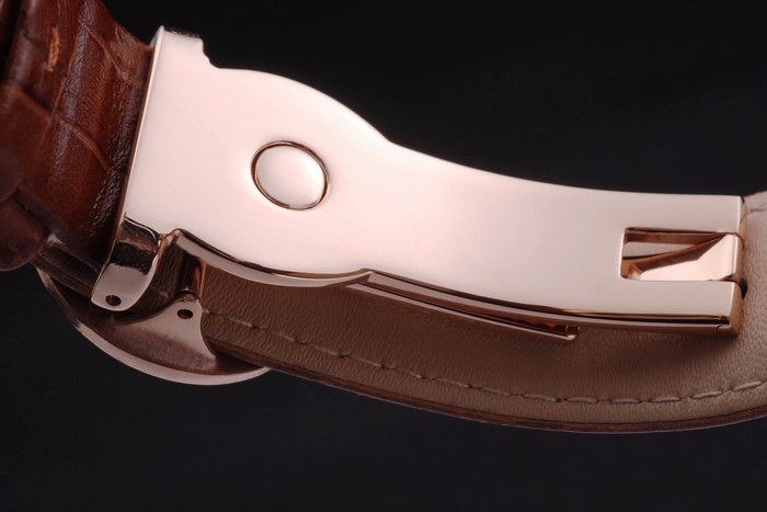 ゴールドクラスプと折りバラパテックロゴバックル付きブラウンレザーストラップを18Kはバンドタイプ