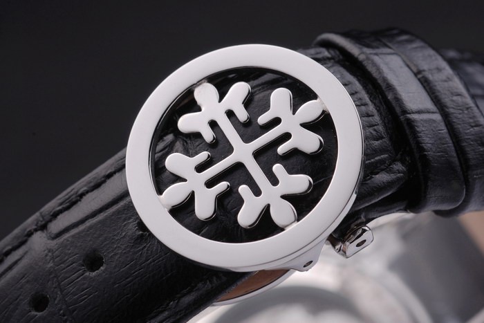 ステンレススチールケース:パテックフィリップスタンプとステンレス鋼とブラックレザーストラップブレスレットの長さ