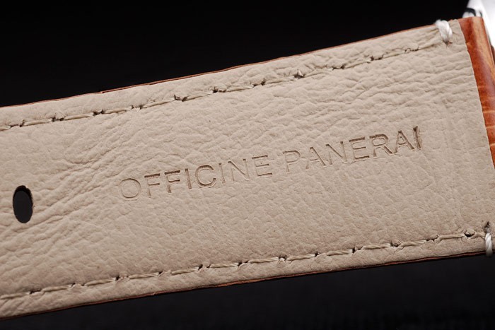 ステンレススチールケース:ホワイトステッチと熱とブラウンワニ革ストラップは、ワークショップパネライイタリアスタンプをエンボス加工し、ブレスレットの長さ