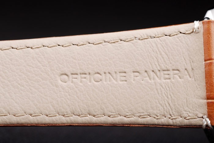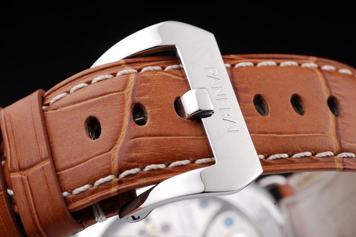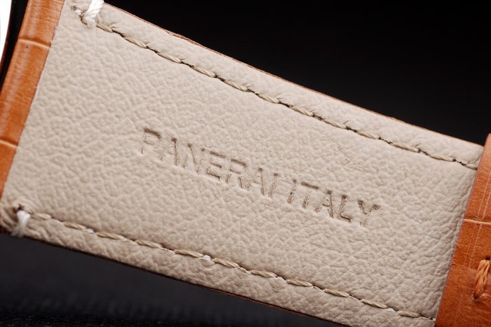 ステンレススチールケース:ホワイトステッチと熱とブラウンワニ革ストラップは、ワークショップパネライイタリアスタンプをエンボス加工し、ブレスレットの長さ
