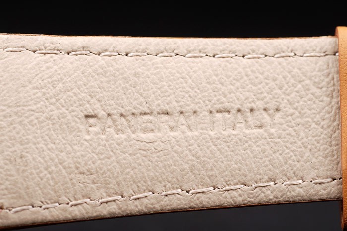 ステンレススチールケース:ホワイトステッチと熱とライトブラウンのレザーストラップは、ワークショップパネライイタリアスタンプをエンボス加工し、パネライ彫刻
