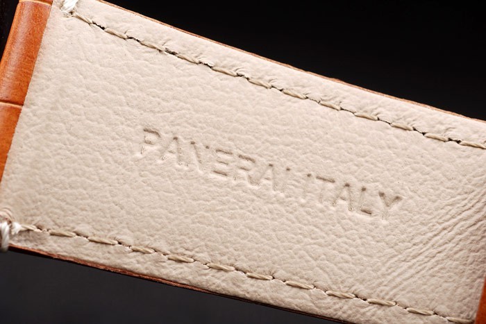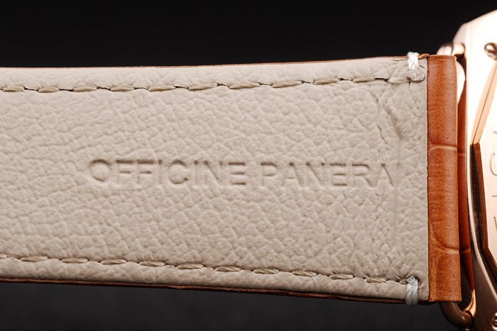 ブレスレット:ホワイトステッチと熱とブラウンワニ革ストラップは、ワークショップパネライイタリア・スタンプおよび18Kは、パネライ彫刻