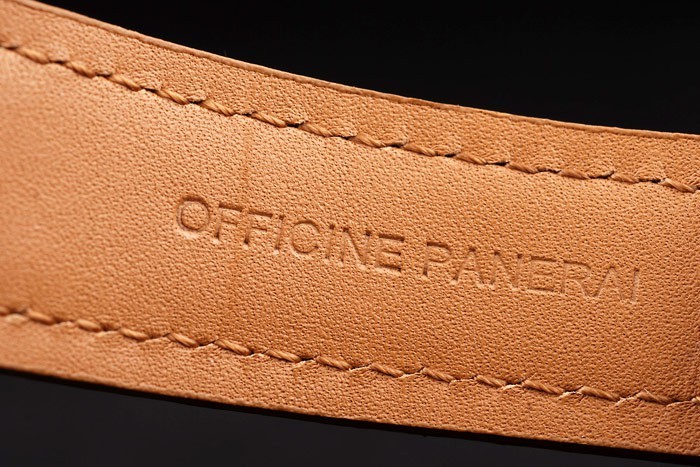 ステンレススチールケース:熱とライトブラウンのレザーストラップは、ワークショップパネライイタリアスタンプをエンボス加工し、ブレスレットの長さ