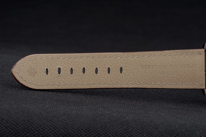性別を明らかにメカニックとバックにスナップブレスレット:ワークショップパネライ熱が縫合白色糸でブラウンクロコダイルストラップをエンボス加工し、褐色エナメルパネライフック、バックル留め