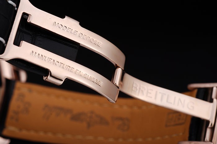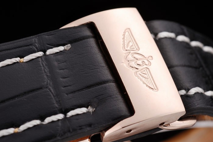ケース:熱が上昇し、金を白い糸stichingと刻まれたロゴと黒のワニ革ストラップブライトリングの名称とロゴをエンボス倍-にメッキクラスプ