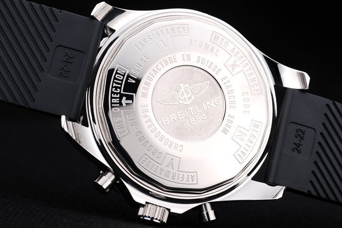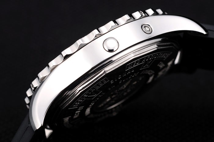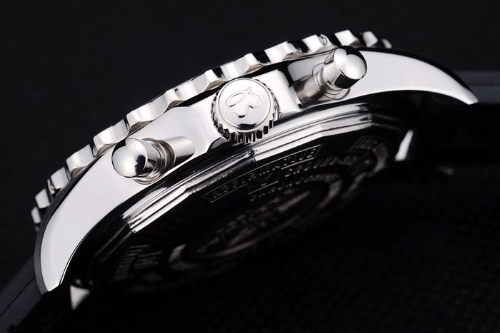 クラウン:ブライトリングのロゴと2つの小さなステンレス製のプッシュとポリッシュステンレススチールカットワーク冠それの両側に – ボタン冠はケース厚を