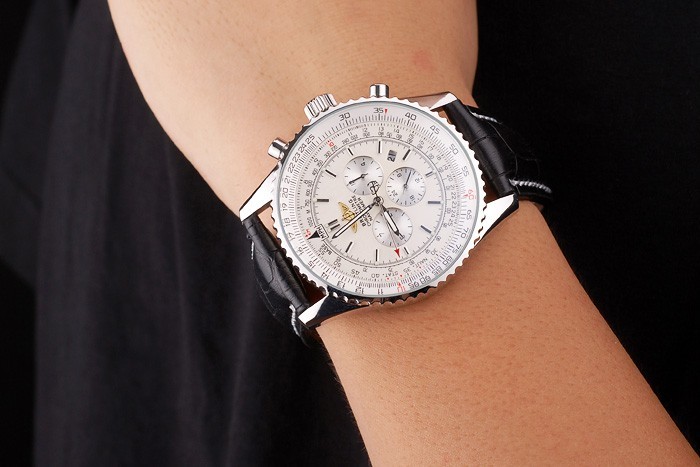 ケース:ポリッシュステンレススチールケース< BR>ブレスレット:特許ホワイトステッチや熱で黒のワニ革ストラップは、ブライトリングの彫刻と刻まれたステンレス鋼のブレスレットの長さ