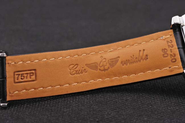 ブレスレット:重い白い綿のステッチとワニのパターンでブラックハイグレードの革、。タン内側バンドは、ブライトリングの名称とロゴをエンボス加工、スチールバックルを持っている
